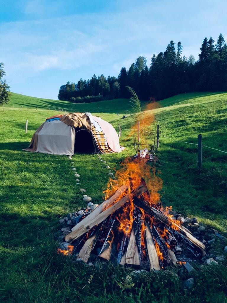 Die Schwitzhütte, der Bauch von Mutter Erde wird Dir ein Platz schenken um Heilung und Transformation zu erleben, geschützt und getragen vom Feuer, (Vater Sonne) und dem Altar (Grossmutter Mond)